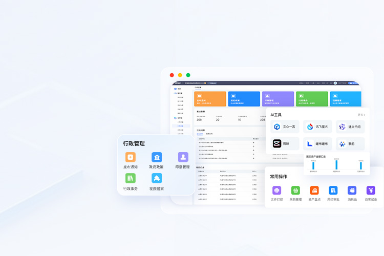行政管理系統涵蓋信息發布、政策導航、行政事務、資產管理、運營分析等功能,同時推出智能印章、視頻管家等智能硬件,軟硬件結合,提升企業管理效率、為企業實現降本增效。